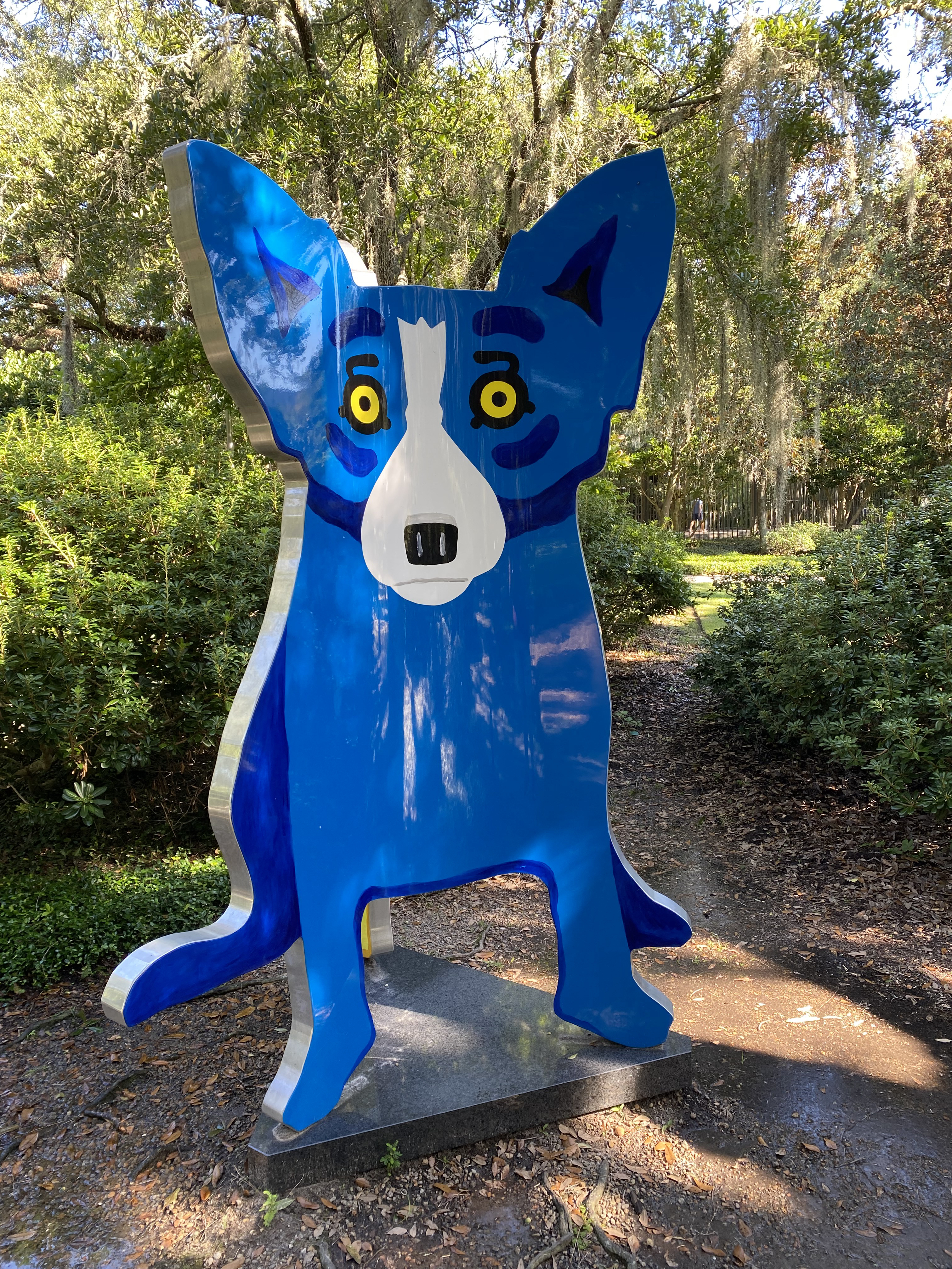 The Blue Dog has long been a favorite of ours. This was a 3-sided sculpture—this side blue, the next yellow, and the third side, red.