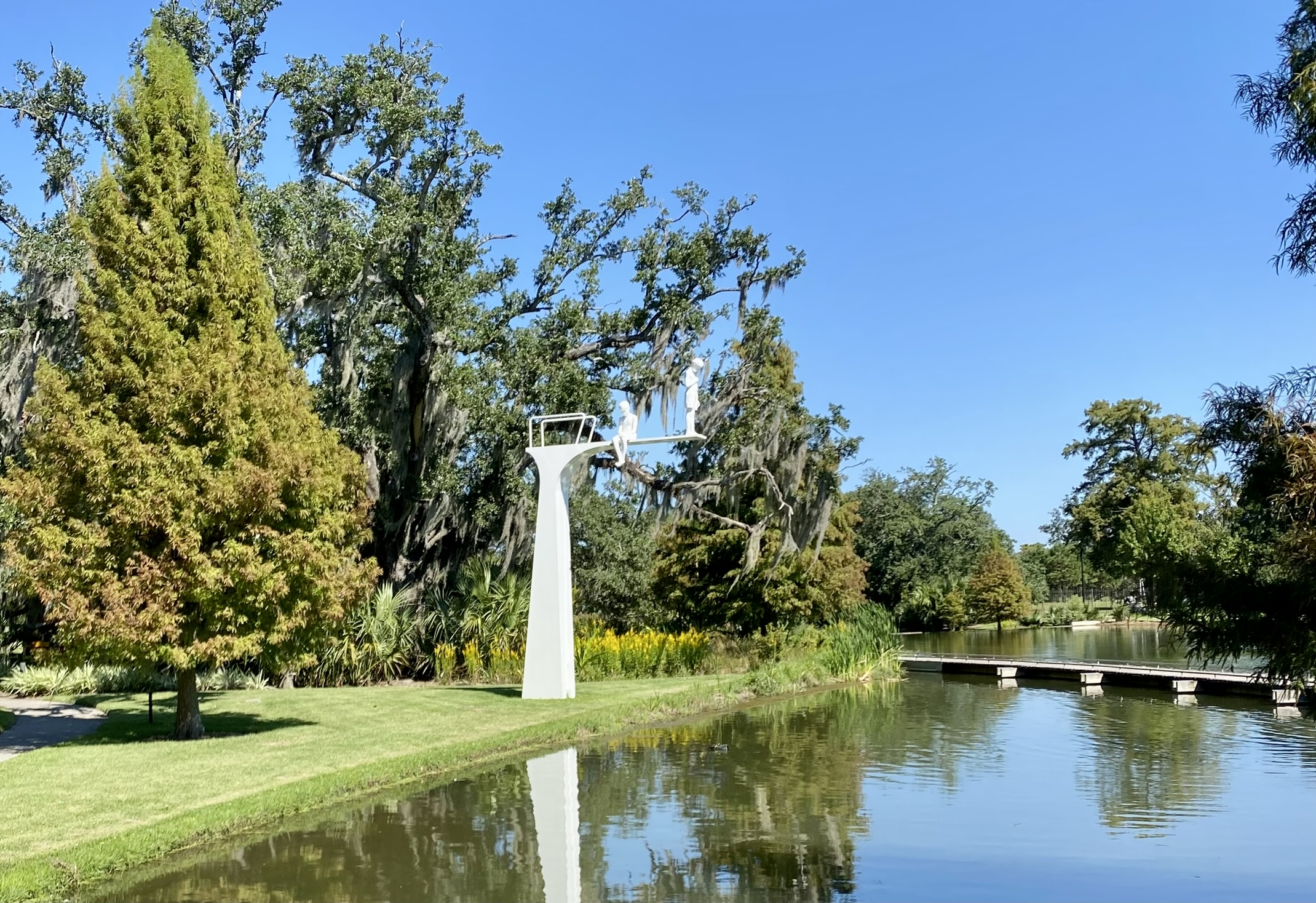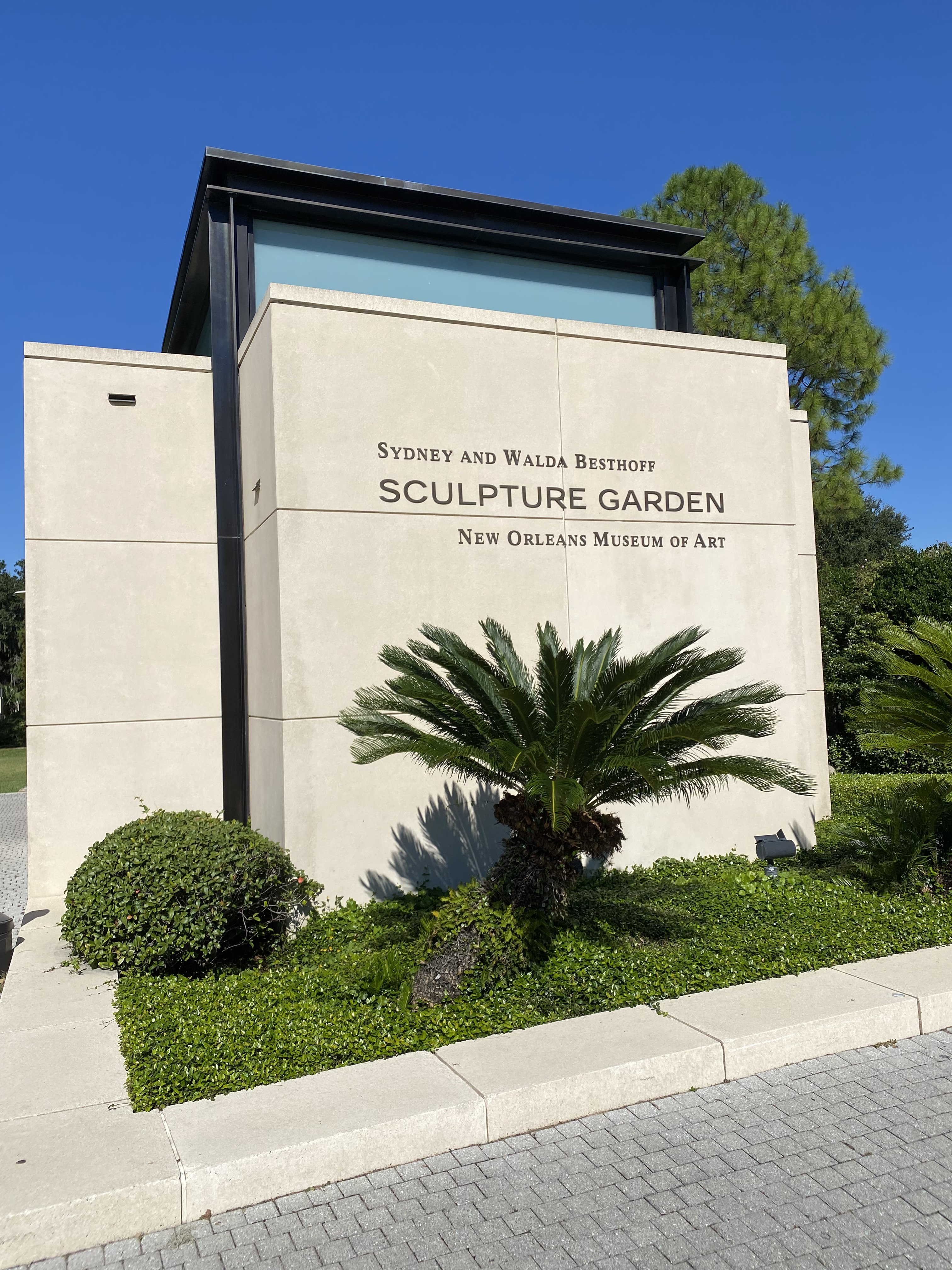 Today we are going to visit NOMA and the adjacent sculpture garden. This museum is a ways from the hotel so we drove there. I turned on “No highways” on Apple Maps, which made the drive easier. I didn’t have to get on the freeways to make this short drive. The streets here are literally littered with pot holes and patches. Worst roads ever and hard on the car. But it does keep the speed down. Several of the streets are lined with Live Oaks, hung with Spanish moss. Always a lovely sight.